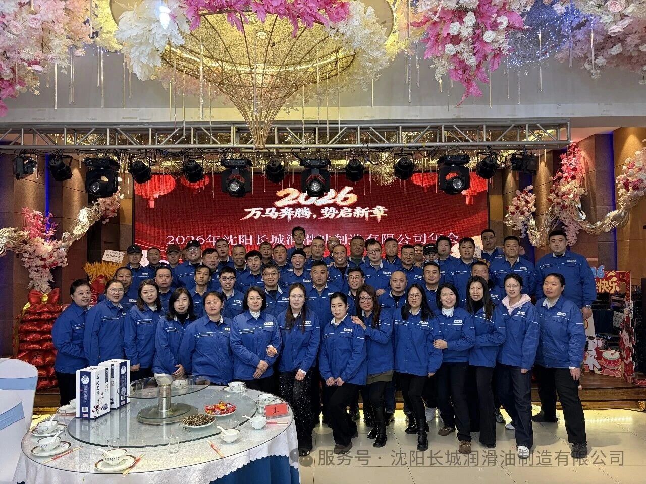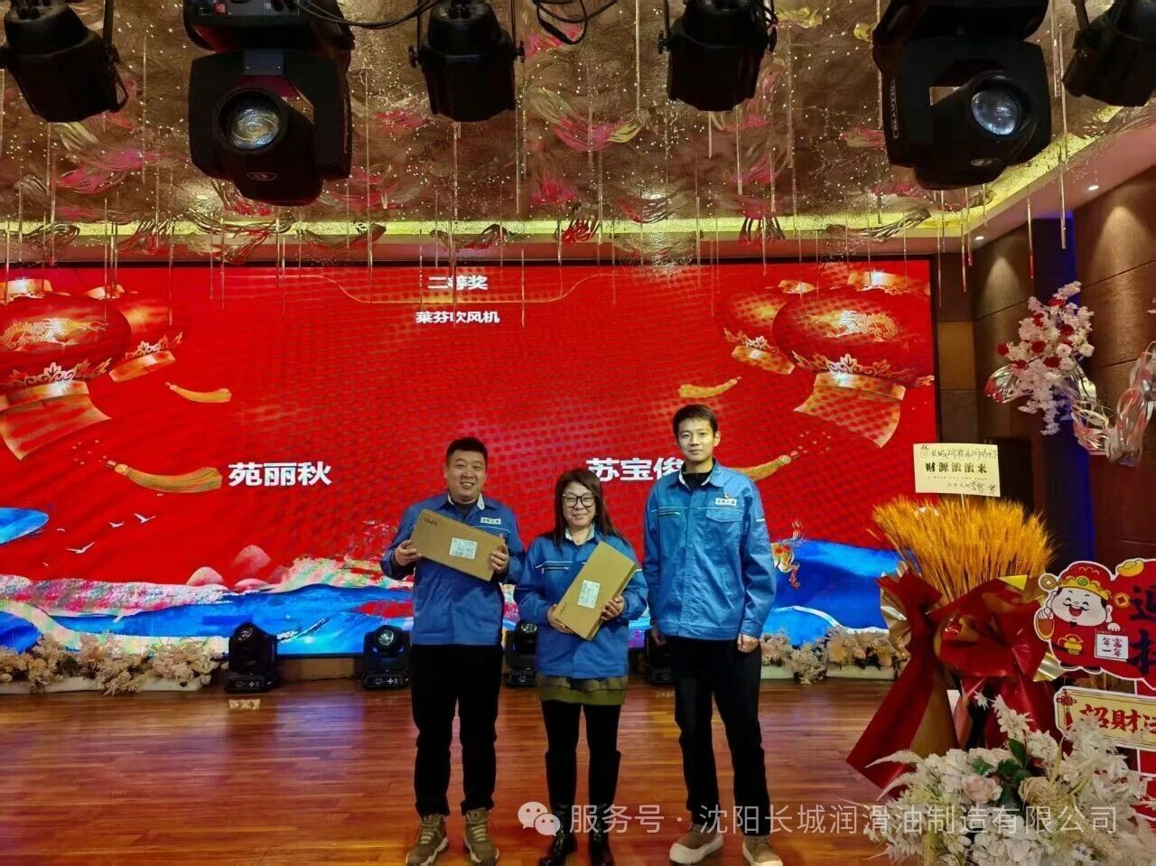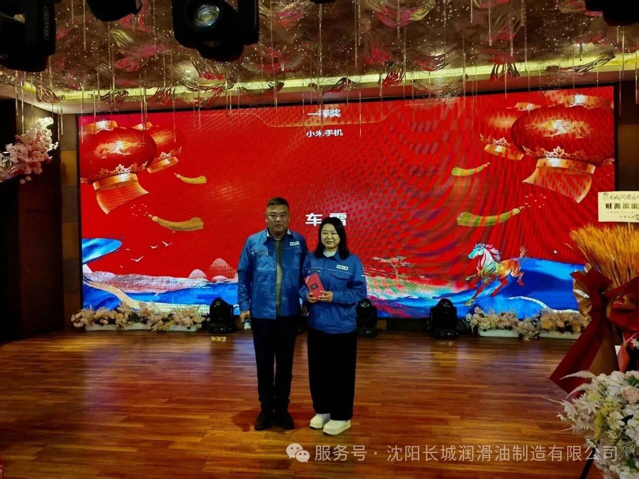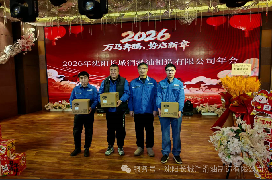 激动人心的抽奖环节,将年会的氛围推向高潮。本次盛典设置了丰厚的奖品,从实用的生活用品双肩包、保温杯、吹风机到重磅的小米手机,每一份奖品都承载着公司对员工的关怀与期许。 三等奖由技术工程师于洋先生颁发,一份份奖品的送出,是对基层技术骨干的致敬; 二等奖的颁奖台上,副总经理张轩瑀先生亲手将礼品送到获奖员工手中,笑容里满是对团队的认可; 最终,总经理张英凯先生为一等奖幸运获得者颁发大奖,全场掌声雷动,欢呼声此起彼伏。 抽奖环节不仅是幸运的角逐,更让大家感受到了沈阳长城润滑油这个大家庭的温暖与活力,和谐融洽的氛围在现场不断升温。 盛典尾声,全体员工身着统一的工装,在璀璨的灯光下合影留念。镜头定格的瞬间,一张张笑脸灿烂绽放,一双双眼睛充满希望。这张全家福,凝聚着沈阳长城润滑油的凝聚力与向心力,见证着全体家人并肩同行的深厚情谊。 旧岁已展千重锦,新年再进百尺竿。2026年,是万马奔腾的一年,更是沈阳长城润滑油乘势而上的一年。站在新的起点,全体长城人将以此次年会为契机,把这份团结与激情转化为前行的动力,在润滑油添加剂的行业赛道上策马扬鞭、奋勇争先。 愿我们以匠心致初心,以聚力赢未来;愿沈阳长城润滑油在新的一年里,业务如万马奔腾般蓬勃发展,外贸版图不断延伸,产品品质享誉全球! 2026,我们整装待发,共赴新程!